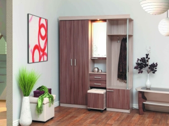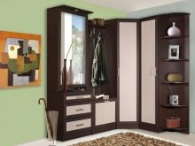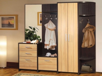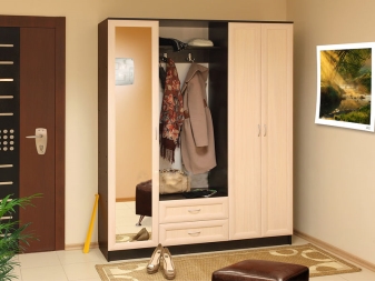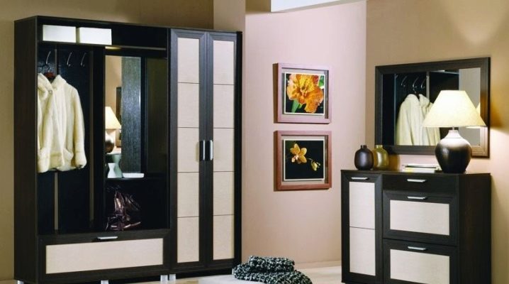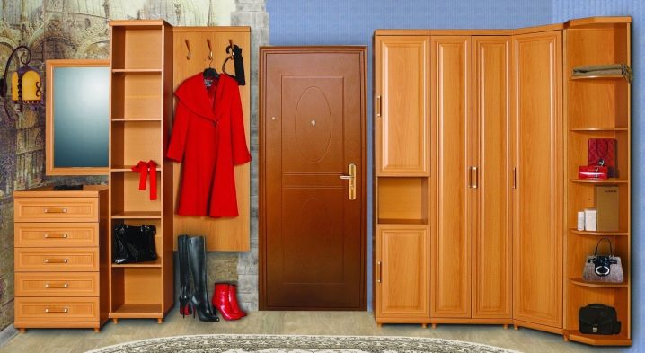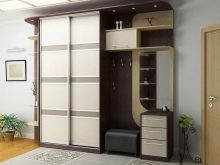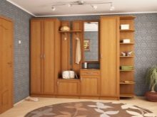 - إنشاءات الأبواب المفصلية. إنها مجموعة متناغمة تتكون من علاقات ورفوف أحذية ومرايا وأدراج وخزانة ملابس تفتح فيها الأبواب على مصراعيها.