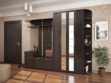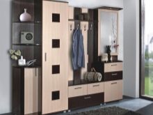 - وظائف. الغرض الرئيسي من جدران الردهة هو تخزين الأشياء ، لذلك تحتاج إلى اختيار نماذج بخزانة ملابس كبيرة ووجود أرفف مغلقة ومفتوحة..