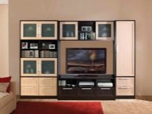 - جدار منزلق. يتم تحميل الشرائح الداخلية إلى الحد الأدنى. تتكون بشكل أساسي من عدد صغير من الأرفف المزخرفة وهي مخصصة فقط لتركيب جهاز تلفزيون. السمة الرئيسية لها هي ترتيب العناصر في شكل سلم. غالبًا ما يكون أثاثًا معياريًا ، نظرًا لأن الاختلاف في ترتيب العناصر يمكن أن يكون مختلفًا..