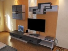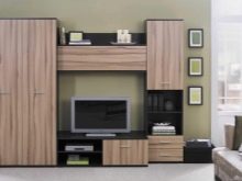 - جدار منزلق. يتم تحميل الشرائح الداخلية إلى الحد الأدنى. تتكون بشكل أساسي من عدد صغير من الأرفف المزخرفة وهي مخصصة فقط لتركيب جهاز تلفزيون. السمة الرئيسية لها هي ترتيب العناصر في شكل سلم. غالبًا ما يكون أثاثًا معياريًا ، نظرًا لأن الاختلاف في ترتيب العناصر يمكن أن يكون مختلفًا..