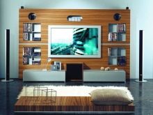 - غرض. نظرًا لحقيقة أن الجدران مصممة بشكل أساسي لمعدات الصوت والفيديو ، فهي تحتوي على منافذ خاصة للإلكترونيات وثقوب للأسلاك ، والتي لا تزيد من مستوى الأمان التشغيلي فحسب ، بل تجعل المقصورة الداخلية أكثر أناقة.