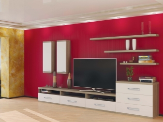 عند تزيين واختيار تصميم منتج ، من المهم الحفاظ على الإحساس بالتناسب ومراقبة نظام الألوان. على الرغم من أن المهمة الرئيسية للجدار هي التركيز على منطقة التلفزيون ، فمن المحتمل أن يؤدي اختيار الظلال الساطعة إلى الإضرار ، لأن التلفزيون قيد التشغيل بالفعل ، وبالتالي فإنه يضع ضغطًا على العينين ، جنبًا إلى جنب مع الأثاث اللامع ، سيؤدي تمامًا إلى إرهاق المستخدم بسرعة.