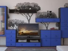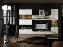 إذا كان أحد الجدران لا يسمح لك باستيعاب العدد المطلوب من الأقسام ، فلا تنزعج. يمكنك توزيع مجمع الأثاث على مساحة المعيشة بأكملها. حتى تحصل على تصميم داخلي كامل بنفس الأسلوب واللون..