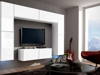 إذا كانت غرفة المعيشة فسيحة بما يكفي ، فأنت لست مقيدًا بخياراتك. تقدم العديد من العلامات التجارية سماعات يصل طولها إلى 4 أمتار لتناسب جميع احتياجاتك. في مثل هذا النظام ، يمكنك وضع كل شيء – والملابس والأطباق والمقتنيات. إذا سمحت المساحة ، يمكنك تجاوز العناصر الضرورية ، وإضافة بعض الكتل لجمال فكرتك واكتمالها.