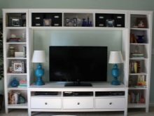 عادة ما يكون الرابط المركزي هنا هو حامل تلفزيون ، مؤطر بخزائن مجاورة. عادة ما تكون هذه هياكل صغيرة..
