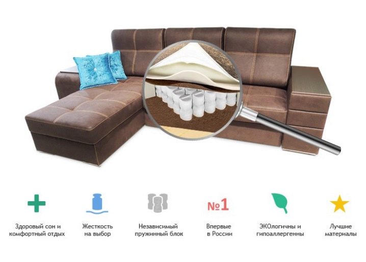 - راحة. تهتم الشركة براحة وصحة عملائها. جميع الأرائك مصممة بشكل تشريحي لضمان وضع ظهر مريح أثناء الراحة والنوم. بالإضافة إلى ذلك ، تدعو العلامة التجارية العملاء إلى اختيار مستوى صلابة المرتبة الطبية المثبتة في قاعدة الأريكة. ستكون قادرًا على الحصول على مكان نوم مثالي ، مصمم وفقًا لخصائصك وتفضيلاتك الفردية.