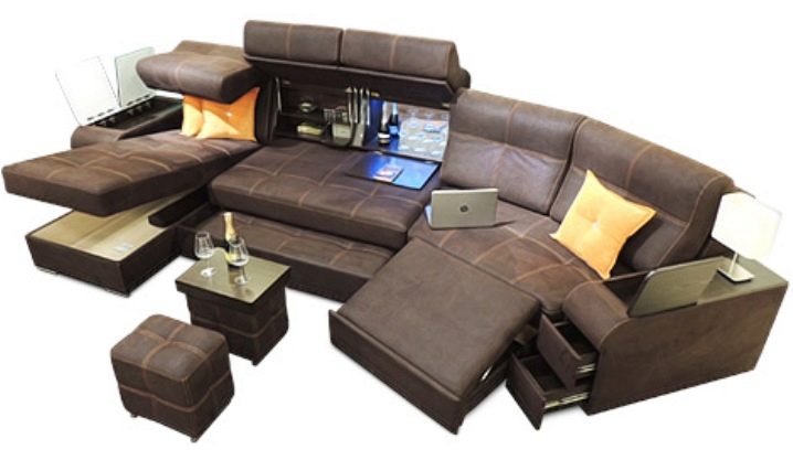 حاملات أكواب تبريد مدمجة في الأريكة ستحافظ على مشروباتك في درجة حرارة آمنة. يمكنك ضبط درجة الحرارة بنفسك ، وكذلك تشغيل الإضاءة ، مما يضفي على الأثاث أناقة خاصة.