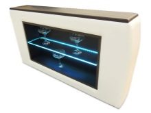 تشتمل الطاولة الجانبية الأنيقة والعملية على قضيبين مدمجين. في نفوسهم يمكنك وضع أربع زجاجات من أي نوع من المشروبات أو كؤوس النبيذ للاحتفال بالمنزل. يمكن استخدام درج صغير لتخزين الأشياء الصغيرة المهمة..
