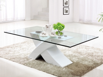 نماذج مثيرة للاهتمام من هذه الجداول مصنوعة أيضًا من الزجاج. بفضل السطح الزجاجي الشفاف ، يمكنك رؤية أرجل المنتج. عادةً ما يجعلهم مصمموهم مختلفين في الملمس والتصميم ، من الخشب والمعدن والبلاستيك. في الوقت نفسه ، ستحتوي الخيارات عالية الجودة على زجاج متين ومقاوم للخدش. هذه النماذج بسيطة للعناية بها. يكفي فقط مسح المنتجات بقطعة قماش مبللة. عند شراء مثل هذا النموذج ، يجدر السؤال عن نوع الحمل الذي يمكن أن يتحمله.