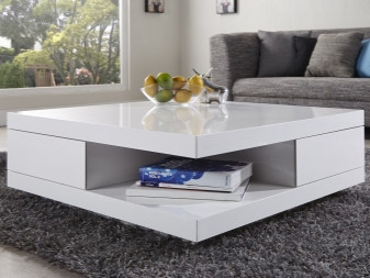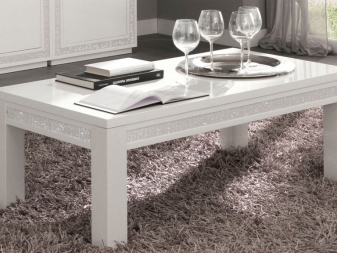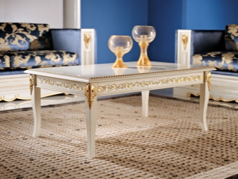يبدو أن النماذج ذات النمط الكلاسيكي لن تفقد أهميتها أبدًا. تتناسب طاولة القهوة البيضاء مع أي ديكور داخلي. أساس الأسلوب هو الثروة والرفاهية ، وكذلك وضوح الأشكال.. سيبدو هذا المنتج مفيدًا في وسط القاعة ، وسيصبح أبرز ما يميزه. في هذه الحالة ، يمكن أن يكون السطح غير لامع أو لامع. في أي حال ، حتى أكثر المستخدمين حساسية سيقدرون وظيفة طاولة القهوة هذه وعمليتها..