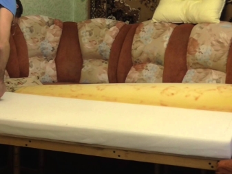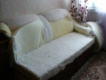 - بالضرورة من الضروري تغيير الحشوة الناعمة للأريكة, وليس فقط نسيجها العلوي. إذا كان جهاز فصل الشتاء الاصطناعي بمثابة مادة مالئة ، فيجب إعطاء الأفضلية للواحد ذو اللون الأبيض النقي ، لأن هذا دليل على جودته العالية. إذا كان الحشو من المطاط الرغوي ، فمن الضروري استخدام ورقتين منه بسمك 2 سم دفعة واحدة ، ووضع قطعة من اللباد بينهما.