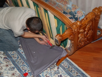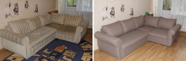 يجب أن تؤخذ في الاعتبار السمات الهيكلية لنموذج أثاث معين. بعض الأرائك لها شكل معقد نوعًا ما وعند استبدال المفروشات ، لا يمكن تفكيكها تمامًا ، لذلك عليك محاولة التأكد من أن القماش في مثل هذه الأماكن يكرر تمامًا شكل الأريكة نفسها. لذلك ، عند سحب أريكة الزاوية ، من الضروري إيلاء اهتمام خاص لدرجة تمدد النسيج بدقة عند زوايا ومفاصل ربط أجزاء من إطار هذا الأثاث. قد تنشأ بعض الصعوبات مع أداء هذا العمل دون المهارات المناسبة..