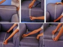 - الخيار الثاني يستغرق وقتًا أطول. أولاً ، يتم إزالة جميع الأجزاء التي يمكن إزالتها من الأريكة – مساند الذراعين والظهر والوسائد ، ويتم قياسها بعناية بشريط قياس من جميع الجوانب ، ويتم نقل النتائج التي تم الحصول عليها إلى القماش ، مع مراعاة إضافة 5 سم على كل منها الجانب. بالإضافة إلى ذلك يتم قطع جميع أجزاء النموذج وتطبيقها على أماكن مناسبة على الأريكة. إذا كان كل شيء على ما يرام وكانت أجزاء النموذج بالحجم المطلوب ، يمكنك المضي قدمًا في إجراءات أخرى..