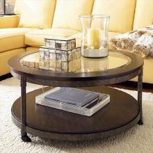 من المريح استخدام طاولة قهوة على عجلات ، والتي تتدحرج بسهولة إلى المكان المطلوب. خصوصيتها هي أرفف مستديرة من أعلى إلى أسفل أو أي جهاز آخر للصحف والمجلات وأجهزة الكمبيوتر المحمولة. تم تجهيز خيارات الطي بأجهزة لوحية ثانية (عند سحبها ، تزداد المساحة ، ويمكن الحصول على طاولة كبيرة “حقيقية”).