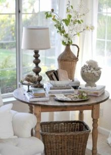 - تم دمج تصميم الغرفة ، المصمم بأسلوب بحري ، بشكل مثالي مع طاولات مصنوعة من مواد طبيعية صديقة للبيئة. منتجات الخوص المصنوعة من الروطان أو كرمة الصفصاف ، المصنوعة من الفلين ستكون مفيدة بالتأكيد. من غير المحتمل أن يتمكن عشاق التصميم الأصلي من التخلي عن “حوض السمك” أو “الساعة” ، ولكن هنا يجب أن تأخذ بالفعل في الاعتبار التوافق مع تصميم داخلي معين.