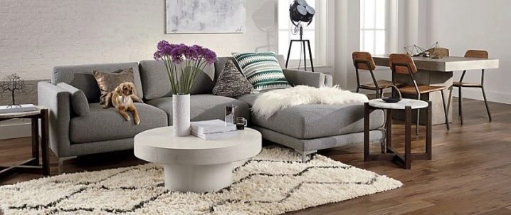 الشكل الدائري (ومعه أيضًا شكل بيضاوي ومضلع) يبدو جيدًا في غرفة معيشة صغيرة. ستعمل حدودها الملساء ، التي لا تحتوي على زاوية واحدة ، على توسيع المساحة بصريًا.