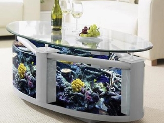 يبذل المصممون قصارى جهدهم لتزيين طاولات القهوة ، وفي بعض الأحيان لا يكفيهم حتى المظهر الطنان. من السهل شراء المنتجات التي يكملها حوض السمك أو سطح الطاولة الحساس للمس للكمبيوتر اللوحي المدمج.
