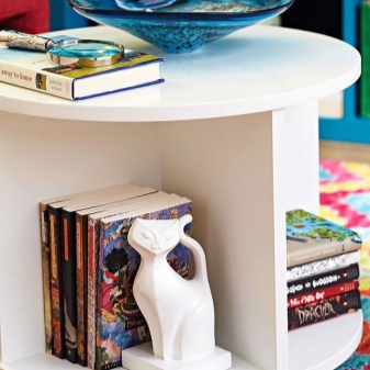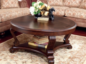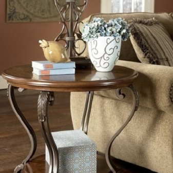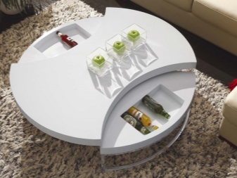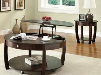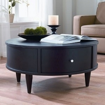 بالنسبة للحجم ، لا يمكن اعتبار طاولات القهوة المستديرة أقل شأناً بأي شكل من الأشكال ، فهي محدودة إلى حد ما. حتى مع الحجم الصغير ، فإن تخزين الصحف والمراسلات الشخصية ، ووضع الهاتف وإطار الصورة ، والوظائف الإضافية المماثلة أمر ممكن تمامًا. ويمكن أن تكون خيارات التحويل صغيرة على الإطلاق فقط عند طيها..