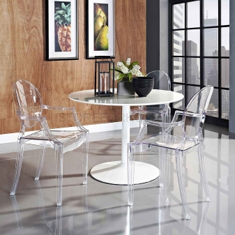 عند اختيار الكراسي شبه المزودة بمساند للذراعين للمنزل ، يجدر النظر فيما إذا كان سيتم تثبيتها مباشرة في الداخل أو في الهواء الطلق. في الحالة الأولى ، يمكنك اختيار أي نوع من هذا الأثاث ، وفي الحالة الثانية ، من الأفضل شراء كراسي بلاستيكية أو خشبية مطلية بالورنيش..