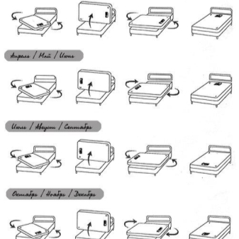 بعد شراء مرتبة ، عليك أن توفر لها الرعاية المناسبة. لذلك ، في البداية يحتاج إلى التهوية حتى تختفي رائحة الإنتاج. إذا كنت لا تخطط لاستخدام المرتبة في المستقبل القريب وترغب في وضعها في الخزانة ، فيجب أيضًا تخزينها بشكل صحيح. في أي حال من الأحوال لا ينبغي تركه في وضع رأسي ، حيث يقل تماثل الحشو ، كما تقل خصائصه التقويمية..