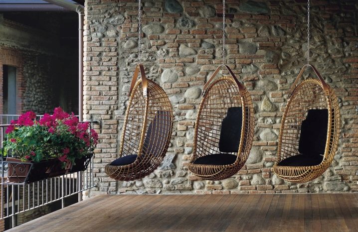 - كوخ صيفي ، شرفة مراقبة ، تراس. يمكن أن يأتي التعليق ليحل محل أثاث البلد المصنوع من الخيزران المعتاد. هذه طريقة ممتعة للغاية لتنويع المظهر الخارجي لمنزل ريفي. من المهم أن تكون قادرًا على حماية الكرسي الهزاز من الرطوبة في الوقت المناسب (على سبيل المثال ، إحضاره إلى المنزل) ، لذا تأكد من اختيار طرازات متحركة مع القدرة على الحركة.