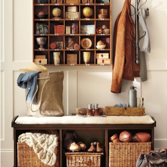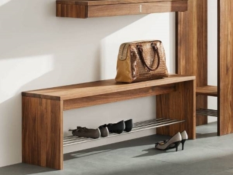 يُظهر هذا الأثاث للضيوف على الفور النمط الذي صنعته الشقة نفسها. يمكنك الجلوس على المقاعد ، مما يمنحك راحة أكبر عند تغيير الأحذية. هناك بعض أنواع هذا الأثاث ، حيث يمكنك طي شيء بداخله – نفس النعال أو غيرها من الأدوات المنزلية المهمة ، على سبيل المثال ، منتجات العناية بالأحذية.