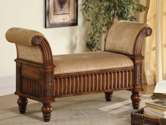 الإطار الخشبي جيد لأنه يعطي إضاءة للغرفة. يمكن أن تكون أرجل المقعد إما مستقيمة أو منحنية. يمكن أيضًا أن تكون صلبة أو بإدخالات منحوتة على شكل زخارف مختلفة..