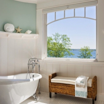 لا يمكنك تجاوز الجانب والمآدب للحمام. في هذا المكان ، إنها جميلة حيث يمكنك ارتداء الملابس بعناية أثناء إجراءات المياه. يمكنك أيضًا الجلوس عليها أو الاتكاء عليها إذا لزم الأمر..