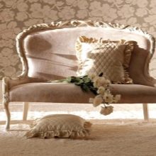 الإطار الخشبي جيد لأنه يعطي إضاءة للغرفة. يمكن أن تكون أرجل المقعد إما مستقيمة أو منحنية. يمكن أيضًا أن تكون صلبة أو بإدخالات منحوتة على شكل زخارف مختلفة..