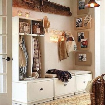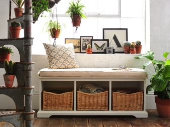 يُظهر هذا الأثاث للضيوف على الفور النمط الذي صنعته الشقة نفسها. يمكنك الجلوس على المقاعد ، مما يمنحك راحة أكبر عند تغيير الأحذية. هناك بعض أنواع هذا الأثاث ، حيث يمكنك طي شيء بداخله – نفس النعال أو غيرها من الأدوات المنزلية المهمة ، على سبيل المثال ، منتجات العناية بالأحذية.