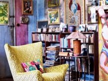 - بوهو. إنه أسلوب من الألوان القوية والطاقة والتأثيرات الشرقية والبوهيمية الغربية. سوف يتناسب الكرسي الإنجليزي ، المصنوع بألوان تتناسب مع الأسلوب ، مع الداخل ويؤكد شخصيته. على سبيل المثال ، كرسي ذو ذراعين برتقالي مع آذان مع بقعة مضيئة سوف يزين غرفة على طراز بوهو..