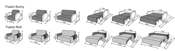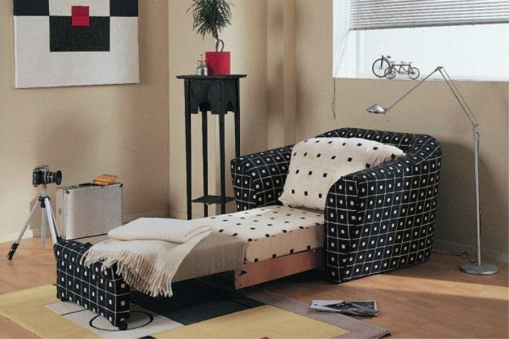 - القدرة على تحويل كرسي الصالة بسرعة وسهولة إلى مكان للنوم, والتي يمكن استخدامها ليس فقط لاستيعاب الضيوف في الليل ، ولكن أيضًا استخدامها كمكان نوم كامل كل يوم ؛