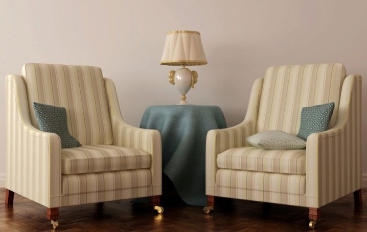 غالبًا ما يستخدم الاتجاه الكلاسيكي لتزيين أماكن المعيشة. لا يمكن تخيل الكلاسيكيات الخالدة بدون أثاث منجد ، بما في ذلك الكراسي بذراعين. نماذج رائعة مزينة بعناصر زخرفية مختلفة مناسبة لهذا النمط: الأنماط والمنحوتات والتذهيب والإضافات الأخرى. الولائم والأرائك مثالية.