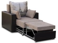 - “هارموني” أو “أكورديون”. هذا هو اسم الهيكل الذي يتم فيه تجميع سطح مكان النوم مرة أخرى في أكورديون ، وبالتالي فإنه يحتفظ بخصائصه التقويمية عند الكشف. يتم استخدام الجزأين المتبقيين لمسند الظهر ، ويعمل الجانب الأفقي كمقعد. لجعل عرض السرير كبيرًا ، تتم إزالة مساند الذراعين. الكرسي ذو المقعد العريض مريح ، ولكن بظهر ضخم ، حيث توجد طبقتان من مراتب العظام المطوية. سرير الكرسي بذراعين بسطح “أكورديون” صلب لا يحتوي على فجوات ، فهو أملس وموثوق.