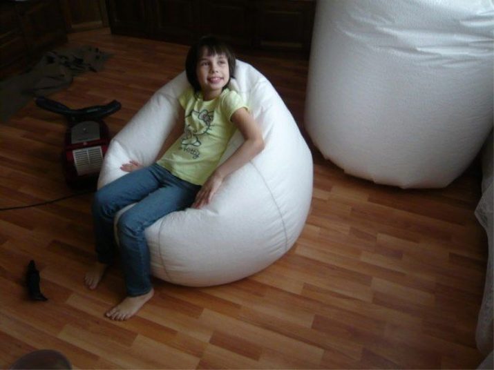 من الآمن والأسهل استخدام المطاط الإسفنجي كحشو في المنزل., لأنه أثناء عملية ملء الكيس برغوة البوليسترين ، قد تنهار كمية معينة من الكرات ، وفي هذه الحالة يمكن جمعها باستخدام مكنسة كهربائية. ومن الأفضل أن ينتظر الأطفال في غرفة أخرى (لتجنب إدخال حشو البوليسترين الموسع في الجهاز التنفسي).