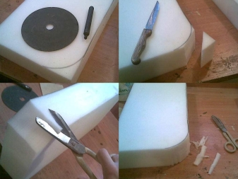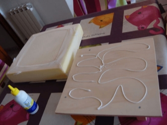 - عندما يكون إطار المنتج جاهزًا ، فأنت بحاجة إلى المتابعة إلى الخطوة التالية – تبطينه بالمطاط الرغوي. بالنسبة لتنجيد جوانب الكرسي ، يجب أن يكون المطاط الإسفنجي أرق ، لكن بالنسبة للظهر والمقعد – سميك بدرجة كافية.