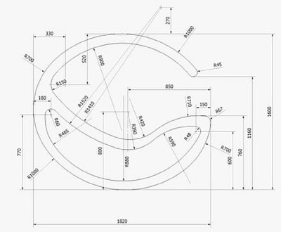 قبل البدء في العمل ، يجب معالجة جميع المواد بمعدات واقية. بعد ذلك ، يتم إنشاء التخطيط الدقيق للكرسي. يمكنك القيام بذلك بنفسك أو استخدام رسم جاهز بأبعاد. فيما يلي أحد الرسوم البيانية لكرسي هزاز الخشب الرقائقي الأصلي: