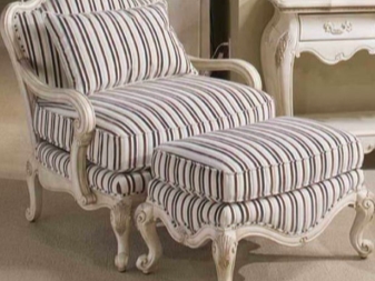 - الذبيحة يمكن تصنيع الكراسي بذراعين ذات الحامل على شكل وسادة أو مقعد من المعدن والخشب الصلب والألواح الخشبية والألواح الليفية والصفائح. في النماذج التي تحتوي على مسند قدم وكراسي قابل للسحب ، يتم استخدام الإطارات المعدنية والهياكل الخشبية الصلبة والبلاستيك ؛