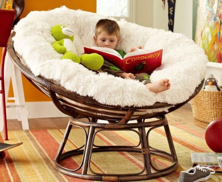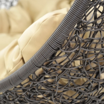 - كرسي القش الأكثر شعبية هو باباسان. لها قاعدة مستديرة مع ظهر منخفض يجلس على حامل من الخيزران. لا يحتوي هذا النموذج على العدائين المنحني الموجود في المنتجات التقليدية. آلية خاصة مخبأة في القاعدة تسمح للكرسي بالتأرجح. يمكن أن يدور المقعد نفسه حول محوره. يأتي الكرسي بغطاء ناعم. التكلفة – 12000 ص.
