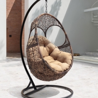 - كثير من الناس يختارون شراء كرسي معلق شمسي, الذي يشبه عش الخوص. إطار الدعامة والنسيج نفسه مغطى بطلاء بني مقاوم للتأثيرات الخارجية. سعره يعتمد على جودة الروطان وعادة لا يقل عن 13000 ص.