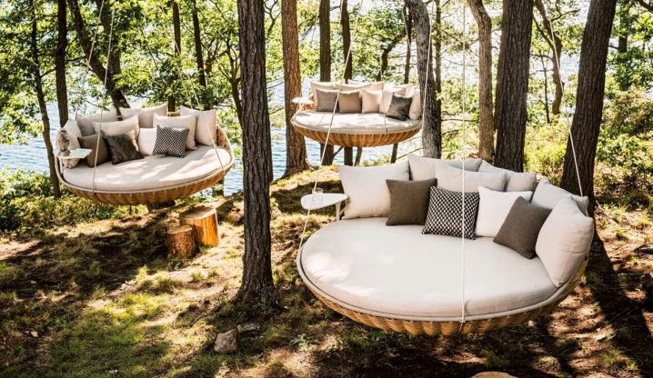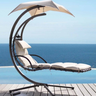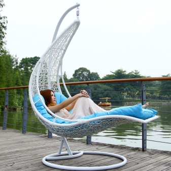 - للتثبيت على موقع خارج المدينة ، خيار غير عادي مثل معلقة الشمس المتسكع أرجوحة. إنها مصنوعة من الروطان ، ولها إطار من الصلب ومجهزة بمرتبة شديدة المقاومة للرطوبة. يتم تثبيت الحوامل على نقطة دعم واحدة لجعل تأرجح الكرسي الهزاز مريحًا قدر الإمكان.