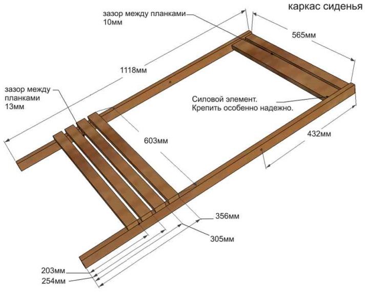 - لوحان يعملان كأساس للظهر, مثبتة على الجانبين بالفعل الهيكل الناتج بالزاوية المطلوبة. ثم يتم شدها أيضًا بالشرائط المستعرضة..