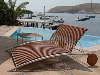 - تتميز بعض خيارات العطاء أو الاسترخاء بجانب الماء بأبسط تصميم ، مثل الكرسي القابل للطي ، وهي مجرد عنصر وظيفي ، لا أكثر.. هذه موديلات محمولة على عجلات يسهل نقلها أو إخفائها في الخزانة لفصل الشتاء.