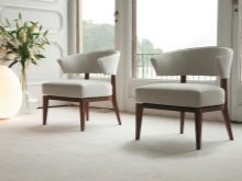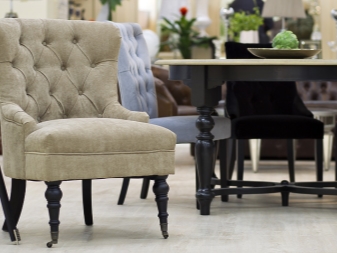 - نماذج للديكورات الداخلية للمنزل, عادةً ما تحتوي على خطوط أكثر نعومة وسلاسة ، بالإضافة إلى أرجل خشبية أنيقة (بدون عجلات). غالبًا ما تكون ألوان هذه الكراسي باستيل ومحايدة وناعمة. غالبًا ما يتم استكمالها بطبعات منقوشة جميلة. تبدو هذه العناصر الداخلية الجذابة رائعة ليس فقط في غرفة المعيشة ، ولكن أيضًا في منطقة تناول الطعام أو في المطبخ أو في غرفة النوم..