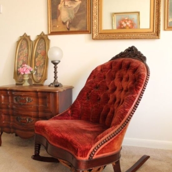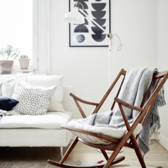 - يجب إيلاء اهتمام خاص لمثل هذا العنصر الداخلي مثل كرسي هزاز. هذه النماذج مثالية للشخص الذي يريد الجلوس بشكل مريح قدر الإمكان على كرسي مريح والاسترخاء. يمكنك وضع هذا الأثاث ليس فقط في شقة في المدينة ، ولكن أيضًا في منزل ريفي أو في الريف..