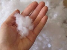 - هولوفيبر. هذه المادة ليست حشو مستقل. غالبًا ما يستخدم كوسادة توسيد جنبًا إلى جنب مع البوليسترين الموسع أو كرات الرغوة. يصبح الأثاث بمثل هذه المادة أكثر نعومة وراحة. في الوقت نفسه ، من المهم اختيار الحجم المناسب لجميع المكونات. تجدر الإشارة إلى أن هولوفيبر مضاد للحساسية تمامًا ومقاوم للرطوبة وقابل للتنفس ولا يمتص عمليًا روائح الجهات الخارجية.