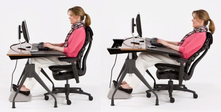 - مساند للذراعين. يجب أن يكون لديك عندما تضطر إلى العمل على مكتب بدون لوحة مفاتيح قابلة للسحب. تعمل مساند الذراعين على تخفيف التوتر من الذراعين والكتفين وتخفيف ألم المعصم.