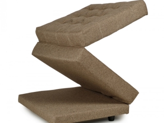 في حد ذاته ، العثماني المُجمَّع القابل للطي هو كائن مضغوط ، غالبًا ما يكون مصنوعًا على شكل مكعب ، ولكن هناك أيضًا أشكال مستديرة (بيضاوية ، دائرية ، أسطوانات). لذلك يمكن وضعه في أي مكان بالغرفة تقريبًا واستخدامه كمسند للقدمين أو كمقعد مبطن إضافي..