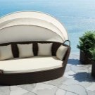 - أريكة كانوبي لن يسمح لك فقط بالاختباء من أشعة الشمس الحارقة. سوف يخفي القناع القاعدة من قطرات المطر.