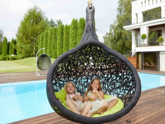 - كرسي معلق مع وسادة, مثبتة في الحديقة ، لن تسمح لك فقط بالجلوس ، ولكن أيضًا للتأرجح في الهواء النقي.
